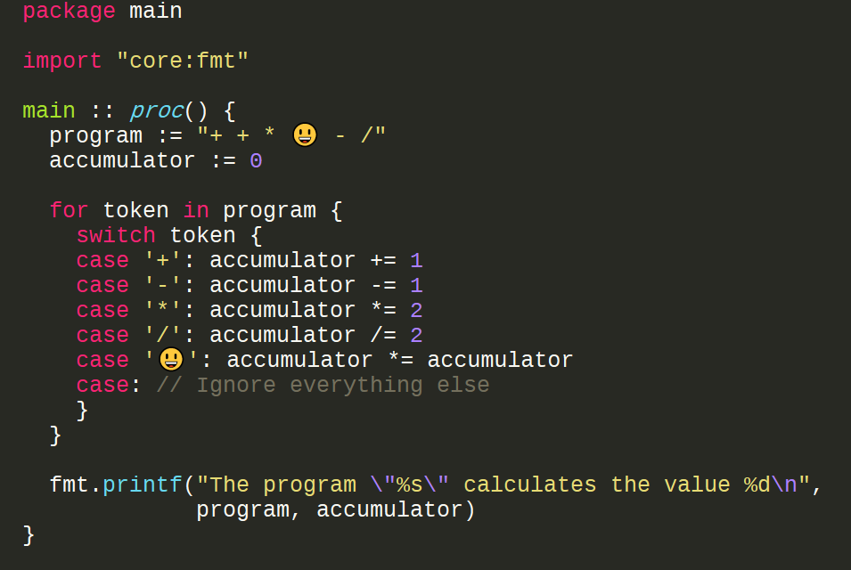 As we already have a nice core:odin/ast / core:odin/parser package, it was easy to get started analyzing the output, of what the raw text would equate to.